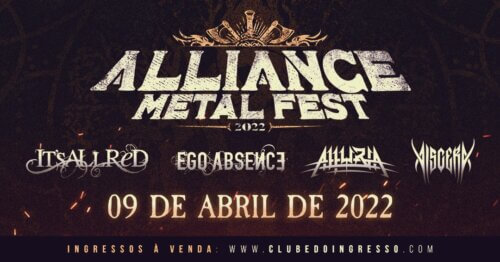 O Alliance Metal Fest acontece no dia 04 de abril (sábado), à partir das 20h, na LA IGLESIA (Rua João Moura 515, Galpão 6, Pinheiros, São Paulo – SP, próximo ao metrô Oscar Freire), e contará com as bandas Alluria (SP – Melodic Death Metal), Viscera (SP – Death Metal), It’s All Red (RS – Alternative Metal), Ego Absence (SP – Power Metal).