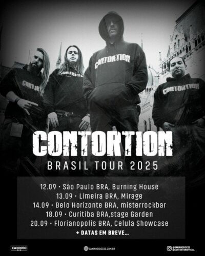 A banda norte-americana Contortion, que faz a primeira turnê pelo Brasil em setembro deste ano, acaba de lançar um remix da música ‘Among the Stars’ com participação da vocalista Heidi Shepherd, da Butcher Babies, com produção da australiana Misstiq, conhecida por seus arranjos de metal tocados no piano. Ouça aqui: https://rebrand.ly/Contortion. ‘Among the Stars’ é uma das músicas favoritas do Contortion. “É uma das músicas mais divertidas de tocar no palco e sempre tem uma reação épica do público. A canção foi escrita sobre a perda da minha filha, que faleceu em 2020 aos 4 anos”, conta Brian Stone, vocalista e cérebro da banda. Contortion é uma banda que apresenta uma mistura técnica e pesada de thrash, groove e djent e já foi atração de uma edição do Knotfest nos EUA. O remix de Misstiq deu contornos mais insanos à faixa. Ela é uma artista musical e produtora de Melbourne, Austrália, conhecida por suas arranjos de metal tocados no piano e outras fusões criativas entre música pesada e elementos eletrônicos. Seu canal no YouTube traz performances ao piano de bandas como Parkway Drive, Slayer e até trilhas de videogames e pop pesado, tudo com arranjos elegantes e dramaticidade sonora. Já a participação da vocalista norte-americana Heidi Shepherd é a materialização de uma homenagem à filha de Brian. “Heidi era uma de suas heroínas e quando a contratamos para cantar nesta faixa, foi uma dedicação e um elogio perfeitos à minha menina”, ele comenta. O frontman do Contortion também ressalta que cada decisão de Misstiq trouxe mais brilho à ‘Among the Stars’ e sem tirar o poder e a intensidade que já estavam lá. “Cada som sutil foi um belo complemento para a faixa”, completa Brian. Contortion no BrasilO Brasil recebe no próximo mês de setembro a inédita turnê do Contortion. O giro, até o momento com cinco datas e com realização da Xaninho Discos, divulga o novo álbum The Common Thread. A turnê começa em São Paulo/SP, dia 12/09 no Burning House e segue no dia seguinte, 13/09, para Limeira, no interior paulista, com show no Mirage. Belo Horizonte/MG é a parada no dia 14/09, no Mister Rock. Depois, a turnê vai para o Sul, com shows dia 18/09 em Curitiba/PR, no Stage Garden, e dia 20/09 em Florianópolis/SC, no Célula Showcase. Contortion, a bandaMachine Head, All That Remains, After the Burial, Opeth e Pantera são as principais referências para se conectar à sonoridade da Contortion, uma banda, acima de tudo, de música pesada e técnica, com distintas nuances e ambientações. A discografia da Contortion é composta por três lançamentos: Live Grenade (EP, 2013), False Flag Paradigm: (álbum, 2015) e The Common Thread (álbum, 2024). “Nosso esforço é para expandir os limites do que é ser músico. Buscamos criativos que nunca se encaixaram em um molde e nos orgulhamos de saber que estaremos entre aqueles artistas que nunca seguem as regras ou limites do estilo artístico”, comenta Brian Stone, vocalista e cérebro da Contortion. Aliás, Brian é um veterano da música pesada. Ele já excursionou, gravou e produziu com diversas bandas de death metal, thrash, hardcore e nu metal ao redor do mundo e tudo virou bagagem para experimentar e criar na Contortion. Lá fora, o Contortion reverbera muito bem e a banda já teve a oportunidade de tocar para grandes plateias, como no Mayhem Fest e Knotfest, ambos em 2015, além de extensas turnês pelos Estados Unidos e Reino Unido nos últimos dois anos. Em meio à impactante massa sonora, a banda traz mensagens de união entre os povos, mas também se posiciona como um grito de revolta contra os poderosos que ditam os limites de liberdades e vidas. |