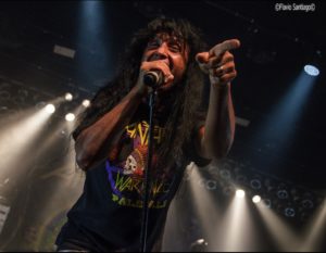 Com passagens recentes pela cidade no Monsters de 2015 e no Carioca Club ano passado, ambas no mês de abril, provavelmente batendo o recorde de intervalo entre shows após meros treze minutos, e divulgando o recém-lançado The Rise Of Chaos, o Accept viria ao palco às 21:20 detonando com Die By The Sword e seu poderoso refrão, perfeito para os fãs cantarem junto. Decorando o palco, quatro representações de maquinário pesado que, em perspectiva com o pano de fundo, davam efeito 3D à capa do álbum. Em frente ao gigantesco kit de Christopher Williams, Wolf Hoffmann e Uwe Lulis traziam suas Flying Vs, Peter Baltes vinha no baixo e Mark Tornillo nos vocais, tão inseparável de seu boné quanto Jeremias, da Turma da Mônica. Stalingrad manteve os ânimos com seu coro de “ô, ô, ô, ô” e a belíssima execução de trecho do hino russo nas seis cordas, como na versão de estúdio, feita por Hoffmann, que ainda tocou lado a lado de Lulis e Baltes. Restless And Wild seria o primeiro grande clássico e London Leatherboys começaria com marcante presença do baixo de Baltes, que deve ser algum irmão distante de Lips, do Anvil, tamanha a similitude! E só então Tornillo daria “Boa noite, São Paulo”, para anunciar a acelerada Final Journey, com sensacional solo que apenas comprova o senso de melodia de Hoffmann, a alma do Accept, aliás! Então mais duas do álbum da turnê: Analog Man, com riff inicial puxado por Hoffmann e backing vocals de toda a banda (ela facilmente poderia integrar algum play do AC/DC) e No Regrets, verdadeira pedrada com riffs cortantes, encerrada por um “Obrigado! Vamos cantar algumas hoje à noite, tudo bem? Estão prontos?”, do sutil vocalista, até pela limitação de tempo. Com pedidos do baixista: “Deixe-me ouvi-los, São Paulo!”, a excelente Princess Of The Dawn transportaria novamente o show para 1982, em música de relativa simples execução (em boa parte da canção, Baltes toca apenas uma nota, por repetidas vezes) que comoveu os fãs e fez a banda assistir à cantoria da platéia, para só retomá-la após incentivar os coros. Uma autêntica aula de heavy metal ao vivo!