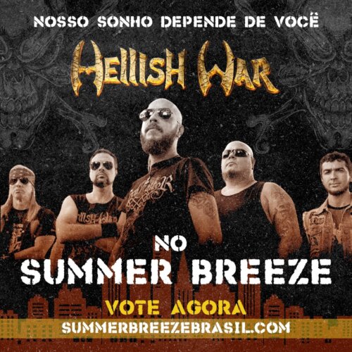 Se não bastasse a apresentação do Hellish War no Abril Pro Rock, o grupo que é formado por Bil Martins nos vocais, Vulcano e Daniel Job nas guitarras, JR no baixo e Daniel Person na bateria, foi uma das 10 bandas escolhidas por um grupo de jurados entre mais de 680 grupos inscritos no concurso “New Blood” do festival Summer Breeze Brasil. O Hellish War agora depende de votação popular para conseguir uma vaga para se apresentar nesse grande festival alemão que pela primeira vez será realizado no Brasil. Para votar no Hellish War e fazer com que a banda tenha a chance de tocar no Summer Breeze, acesse https://summerbreezebrasil.com/new-blood/, depois clique em “Vote Agora” e, então, escolha o Hellish War.