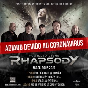 Infelizmente, devido à crise global causada pelo Coronavírus, a turnê da banda italiana Turilli/Lione Rhapsody será adiada. As novas datas serão divulgadas nos próximos dias.