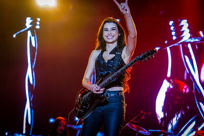 A presença de Nita Strauss ao seu lado — a guitarrista solo da banda de Alice Cooper — elevou o grau do show. As duas duelaram riffs com naturalidade e respeito mútuo. Nada de exibicionismo vazio: foi técnica posta a serviço da música. O público, que ainda se aquecia, respondeu positivamente, com aplausos entre músicas e registros empolgados no celular.