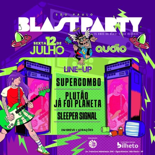 A festa de 15 anos da Blast Stage Records chega à capital paulista no dia 12 de julho, na Audio, com um time de bandas em alta no circuito do rock nacional. A Blast Party São Paulo terá shows da Supercombo, Plutão Já Foi Planeta, Sleeper Signal (EUA) e Jamm’. O festival começa às 18h. Ingressos: https://www.bilheto.com.br/comprar/2407/blast-party Uma das novidades da edição é um After Party – também na Audio – com música eletrônica, ao comando do renomado e premiado DJ Jamm’. A Blast Party São Paulo é a segunda festa da Blast Stage Records em 2024, que no último mês de abril realizou um festival em Guarulhos/SP. O evento contou com show da banda norte-americana The Calling, Fresno, Esteban Tavares, Replace, entre outras. “A Blast Party é a pedida perfeita para quem curte música boa e quer curtir uma noite inesquecível com os amigos. Com um line-up impecável e um ambiente contagiante, o festival promete ser um dos grandes eventos do ano em São Paulo”, destaca o produtor e curador, André Kostta. Plutão Já Foi Planeta sobe ao palco da Blast Party São Paulo com seu rock alternativo carregado de nostalgia e emoção. A banda, que já lançou três álbuns de estúdio, é queridinha do público indie e promete um show emocionante, com hits como “Praia Deserta”, “Mais Uma Vez” e “Céu de Tinta”. Sleeper Signal, na sequência, trará um dose extra de adrenalina. A banda americana, de Nashville, que já dividiu palco com nomes como Foo Fighters e Avenged Sevenfold, é conhecida por seu som pesado e energético, com influências do metalcore e do punk rock. Músicas como “Raise the Black Flag” e “Trouble” certamente farão a pista de dança tremer! A atração principal da noite será a Supercombo, uma das bandas mais potentes e originais do rock nacional contemporâneo. Traz sua mistura única de rock alternativo, pop e rap, que já conquistou uma legião de fãs por todo o Brasil. Com hits como “Levitando”, “Flores” e “Tão Foda”, a banda promete um show eletrizante que vai levantar todos na Audio. O festival no dia 12 de julho na capital paulista ainda terá apresentações do experiente DJ e produtor JAMM´. É um dos principais nomes da cena eletrônica nacional lançando inúmeros remixes oficiais de estrelas nacionais e internacionais como Cláudia Leitte, Ivete Sangalo, Luisa Sonza, Jota Quest, Simply Red, Michael Bublé, entre outros. Seus remixes já renderam ao artista cinco Discos de Ouro. A Blast Party São Paulo tem curadoria de André Kostta (@Andrekostta) e produção executiva de Leo Roriz (@Rzsounds). Blast Stage RecordsA Blast Stage Records surgiu em 2008 sob a direção artística do renomado produtor musical André Kostta, que esteve à frente por 10 anos da Peermusic. A experiência pavimentou o caminho para que ele criasse um selo totalmente independente, abrindo o caminho para novos artistas. A empresa discográfica já foi casa de grandes nomes nacionais e internacionais como The Mission, V.Spy V.Spy, Japinha Conde, Sleeper Signal, Kiko Zambianchi, Fake Number, Kiara Rocks, Aliados, entre vários outros. Além da gravadora, a Blast também lançou no mercado a Blast Channel TV, um plus de interação no engajamento entre os fãs e o artista. SERVIÇO BLAST PARTY EM SÃO PAULO |