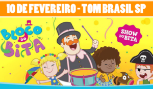 Um dos principais personagens infantis brasileiros, o Bita, também entende de carnaval. E para animar a folia da criançada, o “BLOCO DO BITA” fará a festa pela primeira vez em São Paulo no próximo dia 10 de fevereiro, no Tom Brasil.