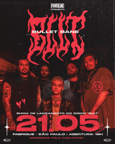 A apresentação especial de lançamento do intitulado BLLT será num sábado, com abertura da casa às 18h. A produção é da Powerline Music & Books. Os ingressos já estão no segundo lote: https://pixelticket.com.br/eventos/8327/bullet-bane-novo-album-bllt-no-fabrique. BLLT, como destaca a banda, é muito mais do que uma sigla: é a manifestação potente de Bullet Bane e seu histórico na música. O registro estará disponível nas plataformas de streaming no dia 6 de maio, a apenas alguns dias antes do show no Fabrique. Para Arthur Mutanen (vocal), Danilo Souza (guitarra), Fernando Uehara (guitarra), Rafael Goldin (baixo) e Renan Garcia (bateria), BLLT vai mostrar a força criativa do quinteto, que aqui reitera as raízes nas melodias do rock’ n’ roll combinadas às letras que falam de emoções, medos, erros e acertos. A sonoridade vai, entretanto, além da essência: os riffs marcantes de rock ganham ambiências e impactos também por meio de sons eletrônicos. Diferente dos discos anteriores, são os cinco integrantes que estampam a capa de BLLT. Representa o somatório de como o trabalho será marcante nesta busca por escancarar a essência da banda. Em resumo, unidade é a palavra-chave deste lançamento. São oito faixas, apenas uma com convidado, e, em todas, a produção completa dos próprios músicos – composição, gravação, mixagem e masterização. A bandaBullet Bane é a banda de rock alternativo, de São Paulo (SP), formada por Arthur Mutanen (vocal), Danilo de Souza (guitarra), Fernando Uehara (guitarra), Rafael Goldin (baixo) e Renan Garcia (bateria). O grupo iniciou sua trajetória no ano de 2009 e já conta com mais de 10 trabalhos lançados, entre álbuns, EPs e splits, além de um DVD Ao Vivo. A banda, que já realizou diversas turnês passando por quase todos os estados brasileiros, se apresentou, em 2019, no maior festival musical do planeta, o Rock In Rio, além de já ter dividido palco, em outras oportunidades, com bandas de renome internacional, como NOFX, No Fun At All, A Wilhelm Scream, Belvedere, Less Than Jake, Millencolin, Mute, Close Your Eyes e Circa Survive. Além disso, já participou também de diversos outros festivais, como Garage Sounds e Oxigênio Fest. |