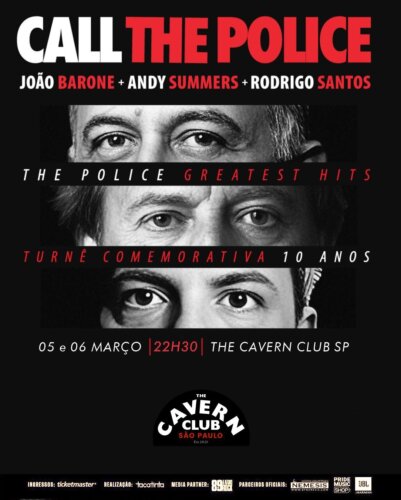 Ver de perto artistas que moldaram a história do rock mundial tornou-se um privilégio cada vez mais raro. Nos dias 5 e 6 de março, o The Cavern Club São Paulo será palco de uma dessas experiências praticamente irrepetíveis. O Call The Police, projeto especial formado por Andy Summers, João Barone e Rodrigo Santos, comemora 10 anos com apresentações, nos dias 5 e 6 de março, na primeira filial do lendário templo da música fora da Inglaterra.As duas noites têm caráter especial pela celebração de uma década desta poderosa união, mas também pela oportunidade única de assistir a músicos fundamentais da música brasileira e internacional em um ambiente concebido para a proximidade, para a escuta atenta e para a conexão direta entre artistas e público. Em tempos de grandes arenas e produções monumentais, o Call The Police aposta no oposto, intensidade, excelência musical e a experiência de ver lendas atuando a poucos metros de distância.