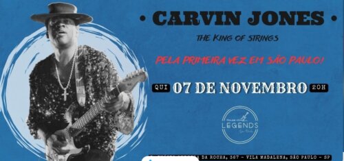 Conhecido como o “King of Strings” – Rei das Cordas – traduzido para o português, o músico Carvin Jones chega em São Paulo nesta quinta-feira (07) para show inédito no House of Legends. Eleito pela Guitarist Magazine como um dos 50 maiores guitarristas de blues de todos os tempos e por Eric Clapton como “o próximo artista promissor do blues”, seguirá a turnê no Brasil em mais três cidades: Londrina, PR (09/11 no Espaço Villa Rica), na capital Paranaense, Curitiba (12/11 no Jokers), e em Florianópolis (13/11 no John Bull).