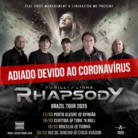 Infelizmente, devido à crise global causada pelo Coronavírus, a turnê da banda italiana Turilli/Lione Rhapsody será adiada. As novas datas serão divulgadas nos próximos dias. Mensagem da banda: “Estamos tristes por...