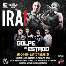No mês que vem o Ira! se apresenta no ABC ao lado do Golpe de Estado. O show acontece no dia 30/04 (quinta-feira, véspera de feriado!) no Clube 1º de...