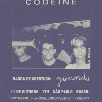 Está chegando a hora do aguardado show do trio norte-americano Codeine, pela primeira vez no Brasil, dia 11 de outubro no @citylights_sp. Para tornar a noite ainda mais especial, convidamos...