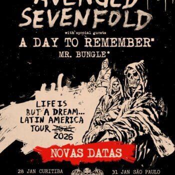 Avenged Sevenfold: Novas datas dos shows no Brasil Os shows da banda Avenged Sevenfold no Brasil já têm novas datas para acontecer: dia 28 de janeiro, na Pedreira Paulo Leminski, em Curitiba, com abertura de Mr. Bungle;...