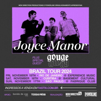 Começa essa semana a aguardada inédita turnê brasileira da Joyce Manor, banda norte-americana pop punk/indie rock que celebra 10 anos do aclamado disco Never Hungover Again (2014), junto à conterrânea post-hardcore/noise rock Gouge Away,...