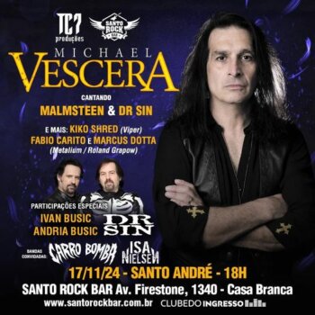 O vocalista norte-americano Michael Vescera se apresentará na cidade de Santo André no dia 17 de novembro (domingo) no Santo Rock Bar (veja serviço abaixo). A abertura ficará por conta...