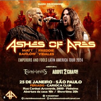 Definidas as bandas Throw Me To The Wolves (Melodic Death Metal) e About2Crash (Modern Metal) para a abertura do único do Ashes Of Ares no Brasil, que será dia 25...