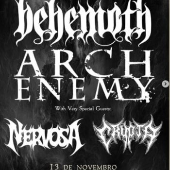 Arch Enemy e Behemoth iniciam uma turnê conjunta pela América Latina nesta semana. As apresentações no Brasil, que têm produção da Liberation MC, acontecem nos seguintes locais e datas: 11/11...
