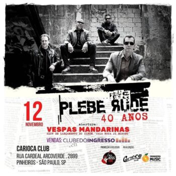 O palco do Carioca Club, em São Paulo, recebe nesta sexta-feira (12), a partir das 19h, as bandas de rock nacional Plebe Rude, com show completo alusivo aos 40 anos de carreira,...