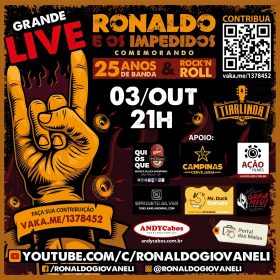 Neste sábado (03/10), às 21h, rola uma Live de comemoração dos 25 anos de Rock da banda Ronaldo e os Impedidos, que é liderada pelo ex-goleiro do Corinthians e comentarista...