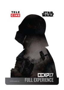 A CCXP – Comic Con Experience, maior Comic Con do planeta com recorde de público em 2016 após reunir mais de 196 mil pessoas, apresenta, em parceria com a Rede Telecine, as aguardadas credenciais da quarta edição do evento, que acontece de 07 a 10 de dezembro de 2017 no São Paulo Expo. As artes levam alguns dos personagens mais icônicos da saga Star Wars: Stormtrooper (quinta-feira), Kylo Ren (sexta-feira), Chewbacca (sábado), Rey (domingo),BB-8 (quatro dias), Darth Vader (Full Experience) e Princesa Leia (Epic Experience). Confira: