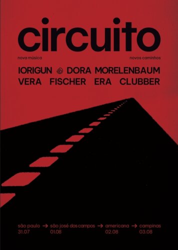Mais de 700 km rodados, 15 artistas circulando, nove cidades… E o projeto Circuito Nova Música, Novos Caminhos segue a mil por hora! Vem aí a sua nova edição: o Circuito #02, de 31 de julho a 3 de agosto. Desta vez, todos os eventos da programação serão gratuitos e o projeto será realizado pela primeira vez em São José dos Campos. Os artistas escalados para o line-up são Dora Morelenbaum, Iorigun e Vera Fischer Era Clubber.
