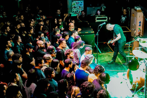 Então veio o momento mais simbólico da noite: o cover de “Atmosphere”, do Joy Division. Uma escolha que diz muito sobre a banda — e sobre o público que a acompanha. Sem precisar alterar uma nota, o Codeine fez a canção soar ainda mais triste, ainda mais distante. A voz de Immerwahr ecoava no City Lights como se viesse de um porão esquecido em Manchester. O silêncio após o último acorde foi tão denso que parecia físico.