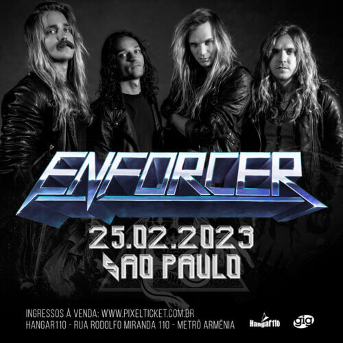 A banda sueca Enforcer, nome do alto escalão da chamada nova onda do heavy metal tradicional, está prestes a desembarcar mais uma vez em São Paulo. O show acontece dia 25 de fevereiro, um sábado, no Hangar 110, como parte da extensa turnê do quarteto pela América Latina. A realização é da Gig Music.