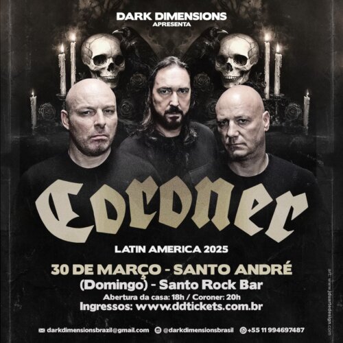 Uma das maiores referências do Thrash Metal técnico mundial, o Coroner retorna ao Brasil para um show exclusivo no dia 30 de março de 2025, domingo, no Santo Rock Bar, em Santo André/SP. Este evento, promovido pela Dark Dimensions, promete ser uma noite intensa e inesquecível para os fãs saudosistas do metal extremo.