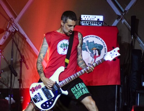 Como rotina em seus mais de 40 anos de estrada, a banda encarou essas adversidades, quem os viu em cima do palco sem se atentar as notícias nem imaginaria que qualquer problema havia ocorrido com os caras nesses últimos dias, pois como sempre deram uma verdadeira aula de como um show visceral de Punk/Hardcore/Crossover deve ser; foram 50 minutos cravados de uma performance no mínimo insana, começando com “Alerta Antifascista”, tema de seu último álbum “Necropolítica” de 2022, para logo de cara Gordo lembrar de forma bem humorada dos perrengues sofridos na manhã daquele domingo. E o que se viu na sequência foi simplesmente uma avalanche de clássicos eternos do Punk/Hardcore brasileiro, pérolas como “Igreja Universal”, “Máquina Militar”, “Amazônia Nunca Mais” e “Expresso da Escravidão” quase fizeram abrir um buraco no chão do Cine Joia com as rodas a todo vapor.
