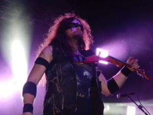 As duas seguintes, ambas de One Man Army, foram introduzidas com interação com a platéia: “Boa noite, São Paulo! Hoje vocês serão nossa Heathen Horde, então façam barulho!” e “Muito obrigado! A próxima é bem punk rock, então quero ver um mosh pit para Two Of Spades”, com alucinantes dois bumbos. King Of Storms teria especial participação dos russos do Kalevala agitando perto do bar, na parte da frente da pista, em especial da vocalista Xenia Markevich (membros do Elvenking preferiram ver um trecho do show do Ensiferum no fundo da pista). Com andamento quebrado, Treacherous Gods faria o show viajar do mais recente álbum para o primeiro, seguida da visceral In My Sword I Trust.