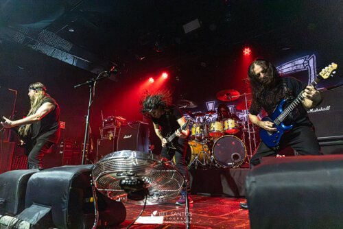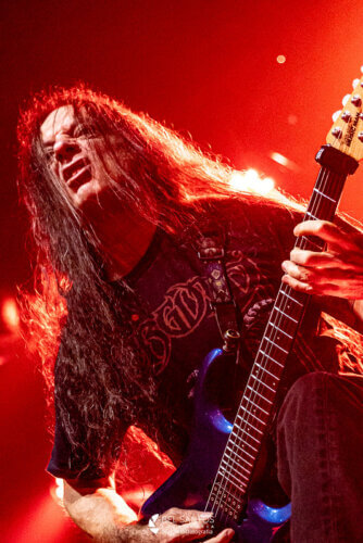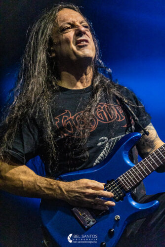 Na prática, ela se tornou uma sinistra ambientação para, nesta ordem, as entradasde: Gene Hoglan (bateria);Steve DiGiorgio (baixo); Bobby Koelble (guitarra); e Max Phelps (vocal/guitarra), que havia passado pelo mesmo Carioca Club no São Paulo Metal Fest com o Cynic em abril/23, mas, fora da banda desde 2024, não tocara naBurningHouse nove dias antes. Ainda sobre a respeitosaformação, não custa relembrar que Hoglantocou em Individual ThoughtPatterns (93)e Symbolic;Koelblegravou Symbolic; eDiGiorgio esteve em Human (91) e Individual ThoughtPatterns– fora sua participação em The FragileArtOfExistence (99), álbum de Chuck com o ControlDenied. Ou seja, estávamos em ótimas mãos.