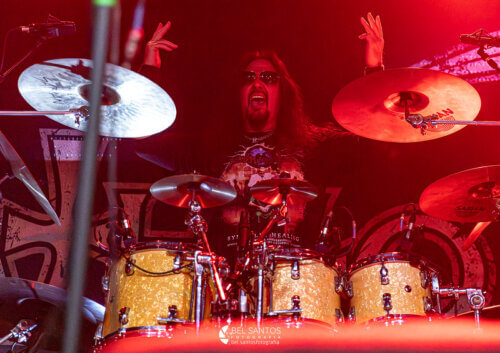 “Como estão todos por aí? Estamos aqui e realmente agradecemos por vocês terem vindo passaresta noite conosco apoiando o death metal. É sempre tão sensacional tocar em São Paulo! Amamos vir aqui! Quem viu o Death ToAll antes? Obrigado por voltarem, mas acho que há um monte de estreantes. Quem está vendo o DeathToAll pela primeira vez?”. Se, de fato, bastante gente se manifestou na primeira checagem, deu para cravar que o número de braços erguidos foi equilibrado na segunda pergunta. Esperto, ele politicamente retomou: