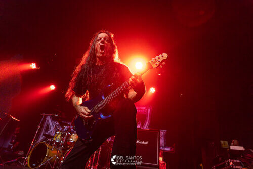 Zombie Ritual foi reconhecida de imediato, o povo cantarolousua melodia inicial em coro e ela foi sucedida por Within The Mind, enquanto reparávamos na decoração única consistir do backdrop com o nome do quarteto.The Philosopherfoi outro tiro certeiro e a galera nem esperou ela terminar para aplaudir Steve, tamanho o nível técnico de sua execução. Após Spiritual Healing, ele tornou a dialogar com os fãs, desta feita se esforçando para se expressar em português, apesar do sotaque carregado e de uma breve escorregada ao “hablar”:“Estão vivos? Vamaê, pô! Falo pra caralho! Estão ‘listos’?”. Em inglês, continuou: