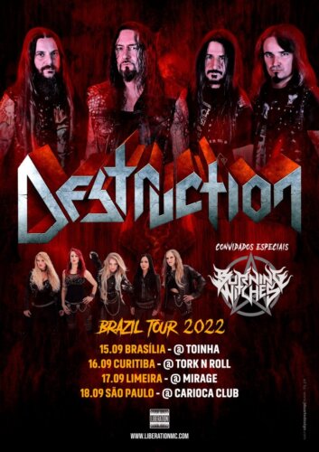 Após anos de espera, os lendários veteranos do thrash alemão, DESTRUCTION, retornarão ao Brasil para uma série de quatros shows que farão parte da turnê latino-americana que celebrará os 40 anos da banda e promoverá o seu incendiário novo álbum, “Diabolical”, lançado em abril de 2022, pela Napalm Records. Além da artilharia pesada desencadeada em seu novo lançamento, não faltarão os inúmeros clássicos do Destruction, cristalizados na história do thrash metal mundial.