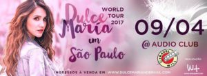 Dulce María é hoje um dos rostos jovens mais influentes da música internacional. A cantora mexicana, que já vendeu mais de 60 milhões de discos e mais de 17 milhões de singles digitais, é considerada, sem dúvida alguma, a diva latina mais querida no Brasil. Após lançar “No Sé Llorar”, o primeiro single do seu próximo disco que chega as lojas no segundo semestre desse ano , ela alcançou o primeiro lugar de vendas do iTunes Brasil, desbancando nomes como Beyoncé e Rihanna. Com uma nova imagem e conceito, ela retorna ao país em novembro em estilo triunfal, com a sua nova turnê “Dulce María World Tour”, onde irá cantar todas as músicas do seu próximo disco e também, os seus maiores sucessos. Você não pode perder!
