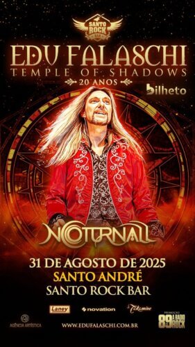 No dia 31 de agosto de 2025, os fãs de Edu Falaschi terão a chance de vivenciar uma experiência única e grandiosa! O renomado vocalista apresentará o espetáculo “Temple of Shadows in Concert” no Santo Rock Bar, em Santo André/SP. Abertura fica por conta da banda Noturnall (veja serviço completo abaixo!).