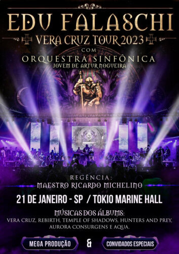 Isto é o que o vocalista Edu Falaschi irá realizar em São Paulo, no dia 21 de janeiro, no Tokio Marine Hall, em mais um grande evento da turnê do álbum “Vera Cruz”. Edu Falaschi irá apresentar show especial com Orquestra Sinfônica Jovem de Artur Nogueira regida pelo Maestro Ricardo Michelino.