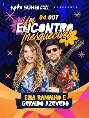 No dia 4 de outubro, a Suhai Music Hall recebe um dos encontros mais marcantes da música brasileira: Elba Ramalho e Geraldo Azevedo sobem ao palco com o espetáculo “Um Encontro Inesquecível”, celebrando quase 40 anos de amizade, parcerias e sucessos que atravessam gerações.
