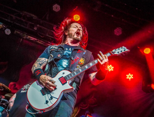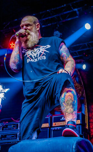 Desde o momento em que Rob Dukes subiu ao palco, a reação foi imediata. O Carioca Club explodiu em gritos antes mesmo da primeira nota, deixando claro que não se tratava apenas de nostalgia, mas de reconhecimento. A abertura com “Bonded by Blood” funcionou como um ataque frontal. As rodas de mosh se formaram instantaneamente e cada verso foi cantado em uníssono, reforçando o quanto o disco segue vivo e relevante quatro décadas depois.