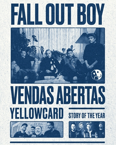 Com mais de duas décadas de carreira, o Fall Out Boy retorna ao Brasil em meio à turnê de divulgação de seu disco mais recente, So Much (For) Stardust (2023). O grupo formado por Patrick Stump (vocal) Pete Wentz (baixo); Joe Trohman (guitarra) e Andy Hurley (bateria) teve um papel fundamental na popularização do movimento emo e conquistou uma legião de fãs com suas letras introspectivas e refrões cativantes, tornando-se um dos maiores representantes do pop punk — som perfeito para quem passava tardes inteiras no MySpace, postando fotos recheadas de legendas dramáticas e ouvindo “Sugar, We’re Goin Down” repetidamente.
