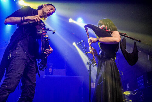 Um dos destaques foi o solo de Stephan Groth, que levou o público a um transe instrumental hipnótico. A sequência com “Walpurgisnacht” e “Nacht des Nordens” trouxe aquele clima de celebração pagã que já virou marca registrada da banda — impossível não se deixar levar pelos ritmos circulares e refrões místicos.
