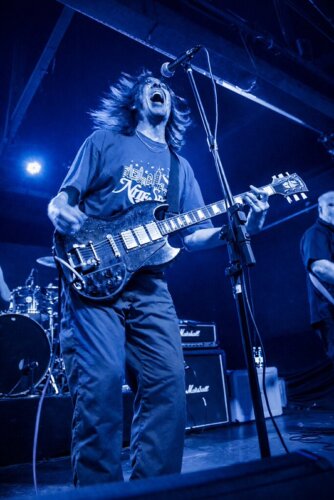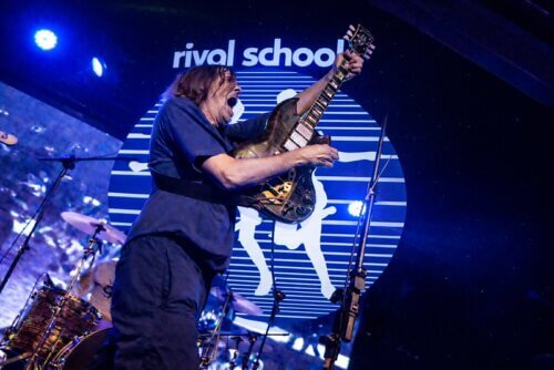 A noite começou com a sensação de evento especial. As bandas nacionais de abertura ajudaram a construir o clima, preparando terreno para o que viria depois, mas era visível que boa parte do público aguardava o momento de ver duas fases distintas da mesma linhagem sonora dividindo a mesma estrutura de palco. Quando o Rival Schools entrou em cena, por volta das oito e vinte da noite, ficou claro que não se tratava de um show protocolar. Walter Schreifels, sorridente e comunicativo, parecia genuinamente impressionado com a recepção brasileira. Havia um clima de celebração tardia, como se aquele encontro estivesse anos atrasado e finalmente se concretizasse.