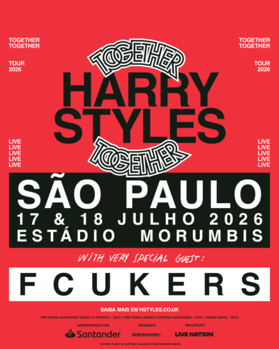 O superstar internacional Harry Styles fará seu aguardado retorno aos palcos globais com uma residência em sete cidades. Promovida pela Live Nation, a Together, Together contará com 50 apresentações em Amsterdã, Londres, São Paulo, Cidade do México, Nova York, Melbourne e Sydney, entre maio e dezembro.
