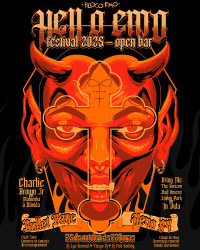 O Bloco Emo anuncia oficialmente o line-up do Hell-O-Emo Festival 2025, que acontece no dia 25 de outubro (sábado), a partir das 23h, no Carioca Club (São Paulo/SP). Reconhecido como o maior Halloween emo do Brasil, o festival chega à sua nova edição destacando nomes autorais que marcaram e seguem movimentando a cena: Bullet Bane e Hevo 84. Ingressos à venda: www.clubedoingresso.com/evento/hell-o-emo-festival-2025 O line-up se completa com tributos de peso que homenageiam bandas históricas do emo e do rock nacional e internacional: Bring Me The Horizon, Linkin Park, Charlie Brown Jr. e Bad Omens. Paralelo aos shows, o Hell-O-Emo Festival oferece uma experiência de open bar, concurso de fantasias, performances cênicas, photobooth exclusivo, áreas instagramáveis, flash tattoos, drinks temáticos com copo colecionável e uma inédita cenografia imersiva. E claro, haverá o tradicional Concurso de Fantasias! Terá ainda um espaço de maquiagem temática com lápis preto, glitter e sangue fake liberados! Na discotecagem: DJ Lya Hemmel, Thiago DJ e DJ Fish Nothing comandando a pista até o último refrão. Na última edição, os ingressos blind ticket se esgotaram em tempo recorde, e a expectativa é de lotação máxima também em 2025. O Hell-O-Emo Festival 2025 tem organização da Agência Pindorama. ServiçoHell-O-Emo Festival 2025Data: 25 de outubro (sábado) Hora: a partir das 23h Local: Carioca Club (Rua Cardeal Arcoverde, 2899 – Pinheiros, São Paulo/SP) Ingressos: www.clubedoingresso.com/evento/hell-o-emo-festival-2025 Classificação: 18 anos |