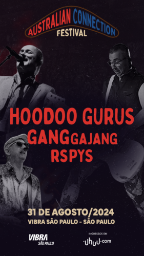 Prepare-se para uma experiência única! Pela primeira vez, três gigantes do surf rock australiano vão compartilhar o mesmo palco em um evento inesquecível no Brasil. Celebrando 30 anos de história, o Australian Connection Festival traz na bagagem as icônicas bandas Hoodoo Gurus, GANGgajang e RSpys para uma histórica turnê pelo país.