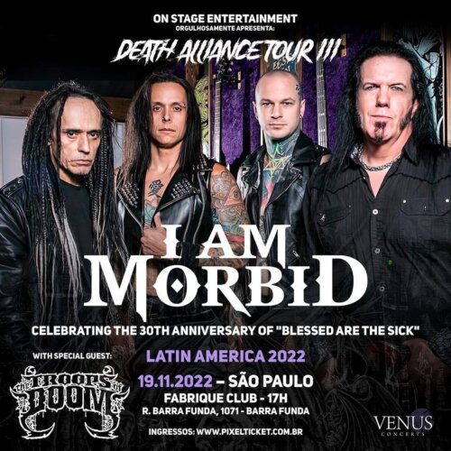 No dia 19 de novembro (sábado) a banda I Am Morbid fará um show especial, celebrando os 30 anos do clássico “Blessed Are The Sick”. O The Troops Of Doom é a banda convidada para abrilhantar essa festa, regada a muito Death Metal! A apresentação será no já tradicional Fabrique Club, na Barra Funda/São Paulo (Veja serviço abaixo!). O I Am Morbid se encontra em território brasileiro (na quarta eles tocaram no Rio de Janeiro!).
