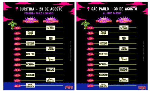 A segunda edição da I Wanna Be Tour proporcionará um dia repleto de shows. Serão mais de 20 atrações que farão o emo e o pop-punk ecoar por Curitiba, na Pedreira Paulo Leminski; e por São Paulo, no Allianz Parque, locais que receberão o evento nos dias 23 de agosto e 30 de agosto, respectivamente. Para que o público possa se programar para montar o seu cronograma dos sonhos, a IWBT antecipa os horários em que as bandas, que estarão divididas entre os palcos It’s Not a Phase e It’s a Lifestyle, irão se apresentar. Os brasileiros do Fake Number e do Gloria abrem a série de espetáculos em ambas ocasiões, enquanto o Good Charlotte e o Fall Out Boy são responsáveis por encerrar o roteiro. A IWBT é uma realização da 30e, maior companhia brasileira de entretenimento ao vivo, e tem patrocínio da Vans. Ainda há ingressos disponíveis para as duas edições pelo site da Eventim (acesse aqui).