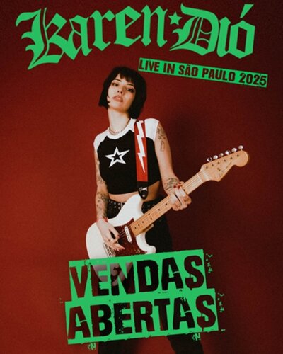 Karen Dió vive um novo capítulo profissional ao se lançar em carreira solo, após ter deixado o Brasil em 2022 e migrado para Inglaterra como parte da preparação para a nova fase. Hoje mais madura, a cantora, compositora e multiartista paulista transforma suas vivências em shows intensos, em que a música, performance e discurso se misturam numa arte genuína e poderosa. Ela retorna ao país para uma apresentação na Casa Rockambole, em São Paulo, no dia 7 de outubro, e ainda tem mais duas performances agendadas em solo brasileiro: os shows de abertura da turnê da banda Avenged Sevenfold, que acontecem no dia 2 de outubro, na Pedreira Paulo Leminski, em Curitiba, e no dia 4 de outubro, no Allianz Parque, em São Paulo. Todas as iniciativas são realizações da 30e, maior companhia brasileira de entretenimento ao vivo; e os ingressos estão disponíveis hoje (25), a partir do meio-dia, no site da Eventim (acesse aqui).