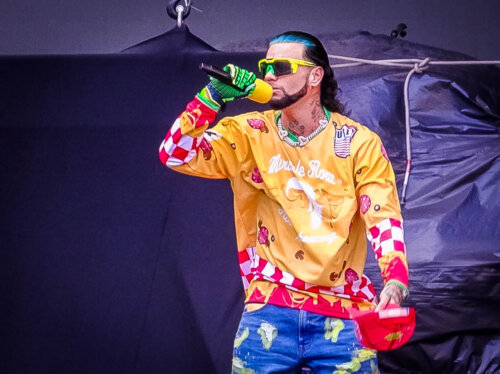 Na sequência veio o RiFF RAFF , dono de um visual chamativo, humor debochado e letras que misturam ostentação, ironia e referências da cultura pop, ele transita entre o rap, o trap e elementos de pop e eletrônico sem se prender a regras. No palco, suas apresentações funcionam quase como uma performance artística, mais focada em atitude, carisma e provocação do que em formatos tradicionais de show, com samples pré gravados e sozinho no palco deu uma esfriada na sequência do festival , dando uma dispersada no público, muitos saíram pra comprar bebidas e ir ao banheiro como musica de fundo aos presentes,