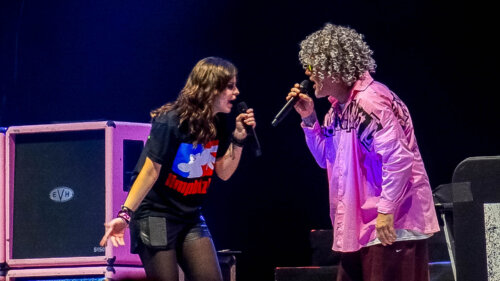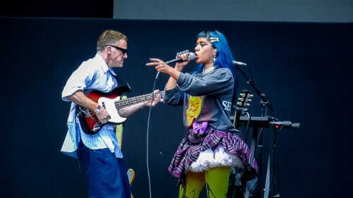 Ecca Vandal foi um desses momentos em que a estética diz tanto quanto o som. A artista tem uma abordagem que cruza rock, punk pop, eletrônico e atitude de palco, e isso se traduz em presença física, em gestos largos e em vocal que alterna ataque e melodia com naturalidade.