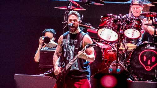 E aí entrou um elemento que virou imagem forte da noite: os sinalizadores. O estádio, que já parecia quente, ganhou outra textura quando a luz das chamas tomou pontos do público e criou aquele contraste de euforia e perigo controlado, como se o show virasse cena de estádio europeu e, ao mesmo tempo, manifestação de torcida. O brilho dos sinalizadores intensificou a sensação de caos festivo, casando perfeitamente com músicas como “Break Stuff” e com o clima de catarse coletiva que o Limp Bizkit sabe puxar sem pedir licença. Foi um daqueles momentos em que o público deixa de ser plateia e vira parte do “cenário” do show, com luz própria, literalmente.