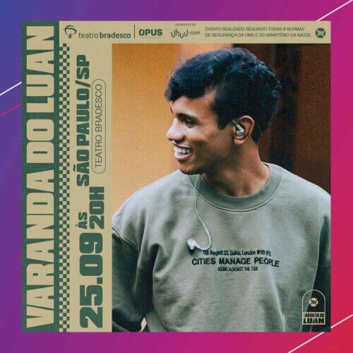 “Varanda do Luan”, projeto do cantor Luan Otten, está de volta! Neste sábado (25/09), o cantor sobe no palco do Teatro Bradesco, a partir das 20h, para apresentar sua mistura de R&R e pop. O show acontece com capacidade reduzida de público e seguindo o novo decreto de São Paulo, o público deverá apresentar o comprovante de vacinação.